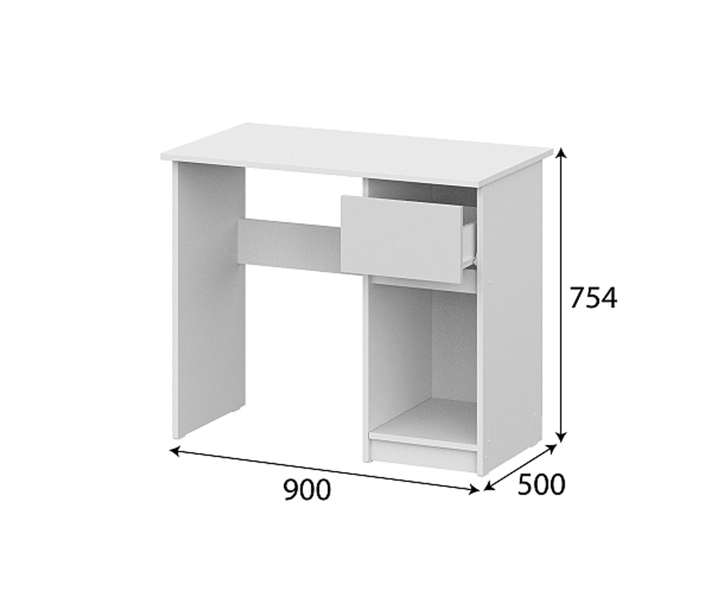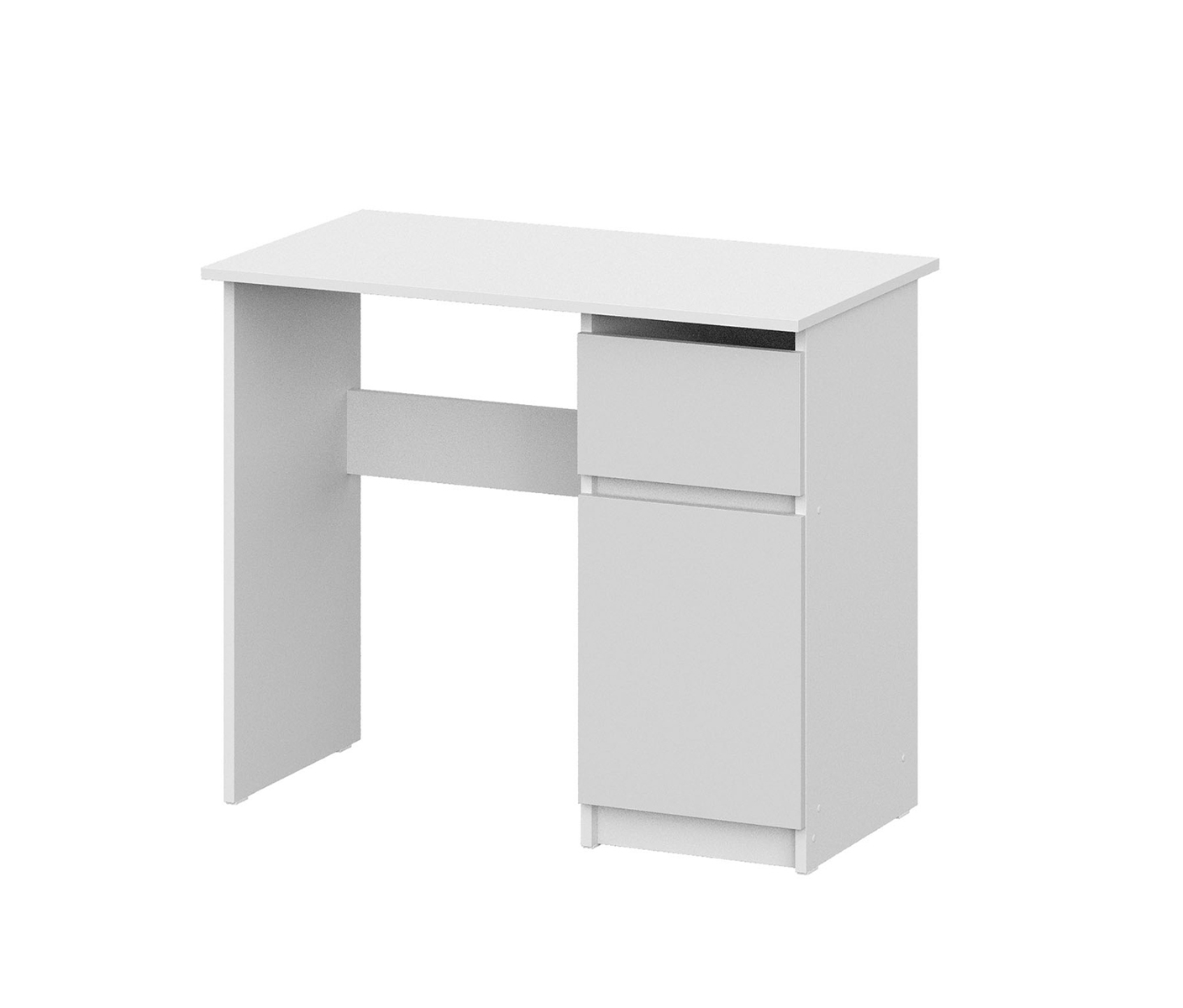 Сам стол изготовлен из высококачественного ЛДСП в цвете «Белый» и выполнен в минималистичном стиле, поэтому не имеет ручек и открывается за выступающие торцы фасадов.