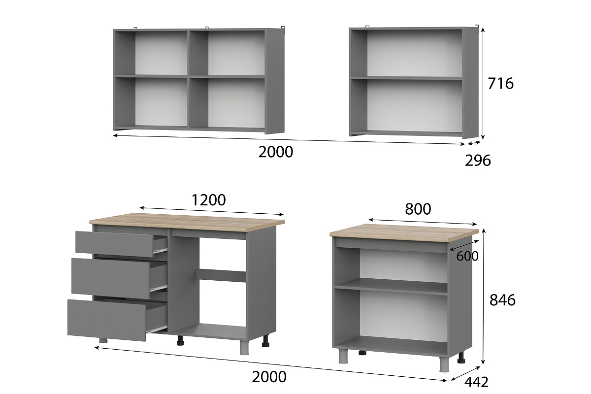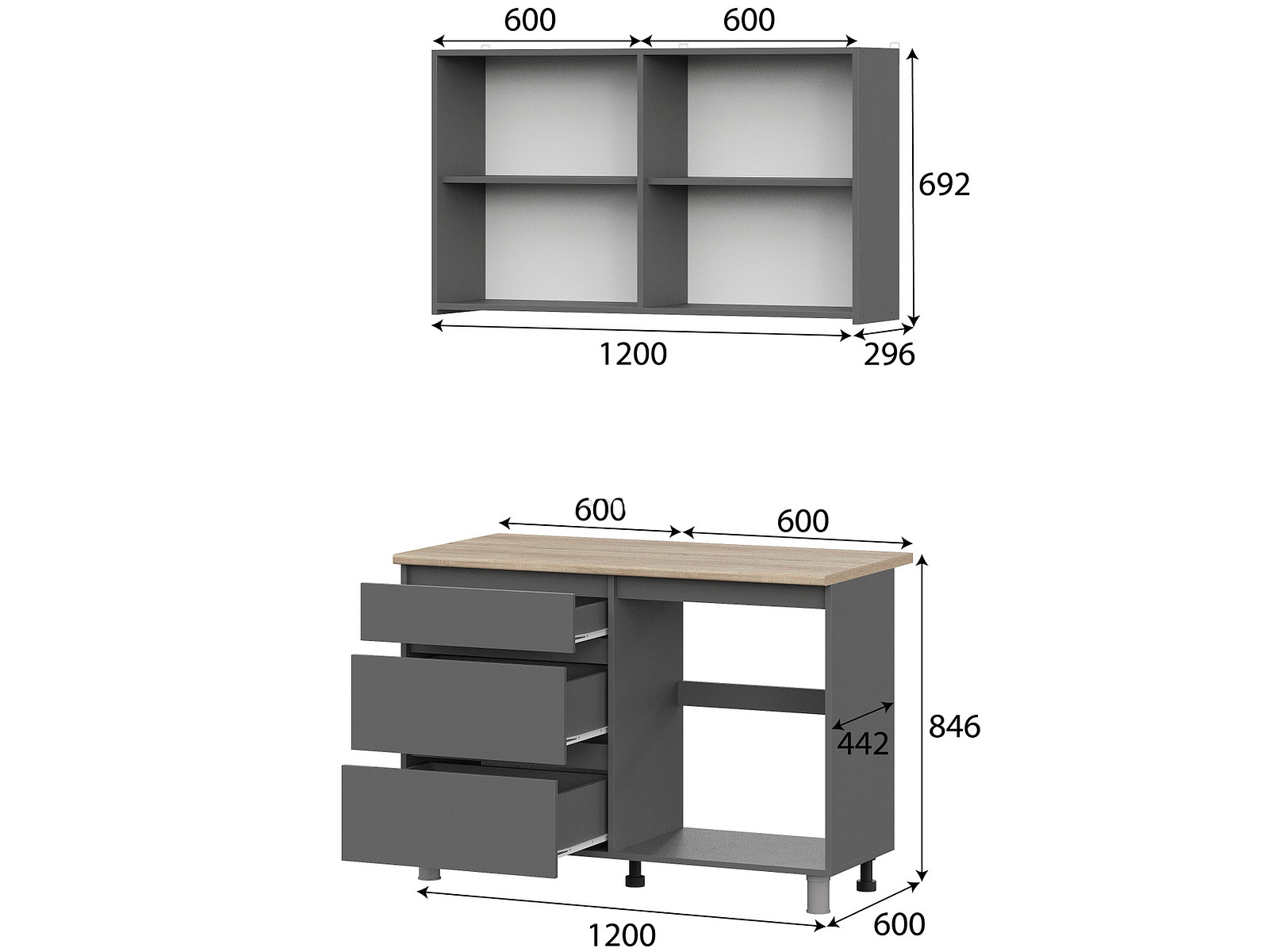 Кухонный гарнитур ДЕНВЕР графит 1.2 м / 1.6 м / 2.0 м