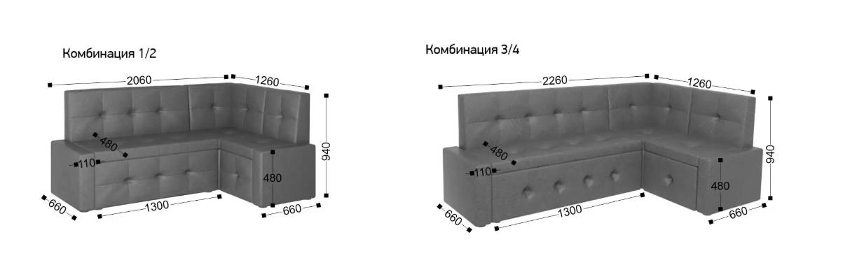 - Ширина: 2060 мм | Глубина: 1260 мм | Высота: 940 мм