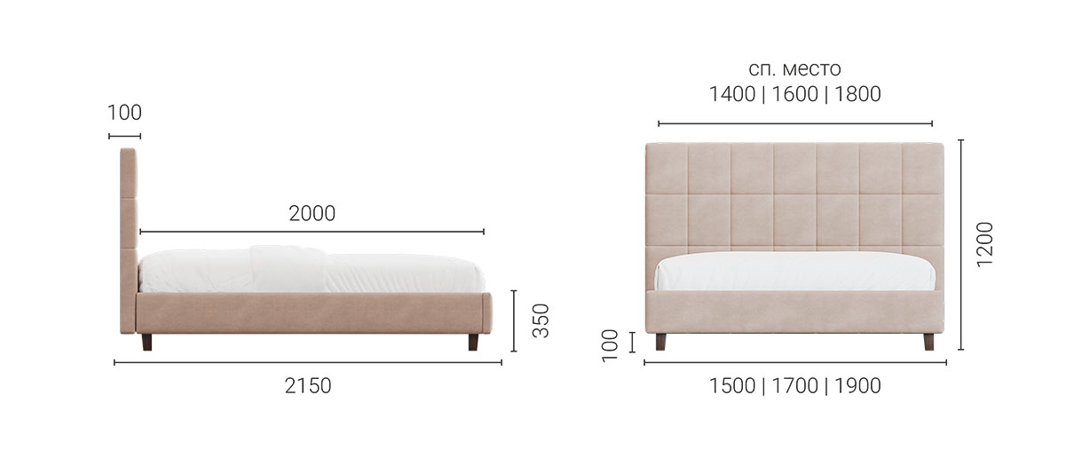 | Габариты, мм | Спальное место, мм | Цена, руб. |