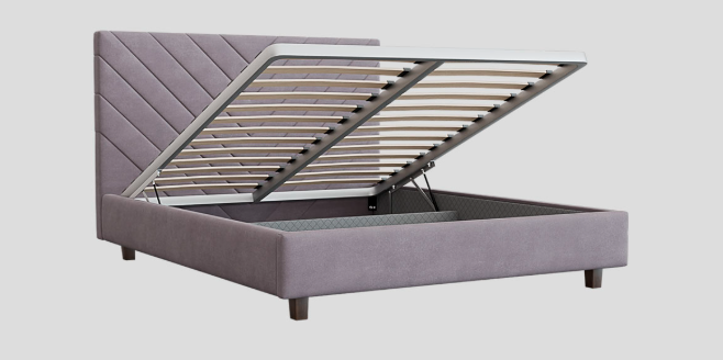 Кровать имеет подъемное ортопедическое основание и короб с дном из МДФ.