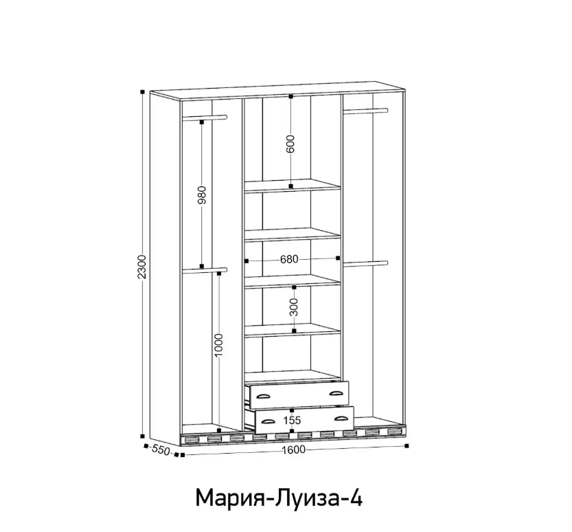 | Шкаф 4-х дверный | ш1600*г550*в2300 мм | 46 000 |