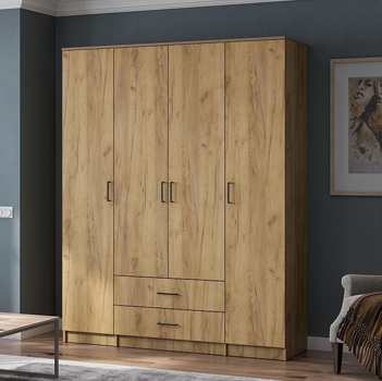 В каждой из них устанавливается по четыре полки. Посередине отделение шириной 768 мм. В нижней части отделения расположена секция с двумя выдвижными ящиками, в верхней - платяное отделение высотой 1512 мм с одной полкой сверху и металлической штангой.