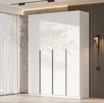 Минималистичные черные ручки на фасадах выполнены с современном стиле и подойдут к любой мебели, уже имеющейся в комнате.
