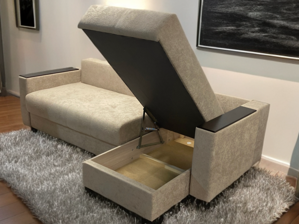 Диван "Комфорт-3" с оттоманкой - у данной модели хорошее спальное место 2140*1500 мм и большой вместительный короб для хранения белья.