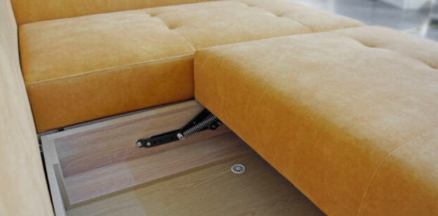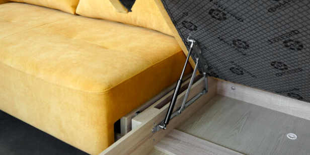 Спальное место раскладывается простым и надежным механизмом «Тик-Так» с дополнительной опорой для устойчивости. Под сиденьями имеются вместительные ящики для хранения вещей.