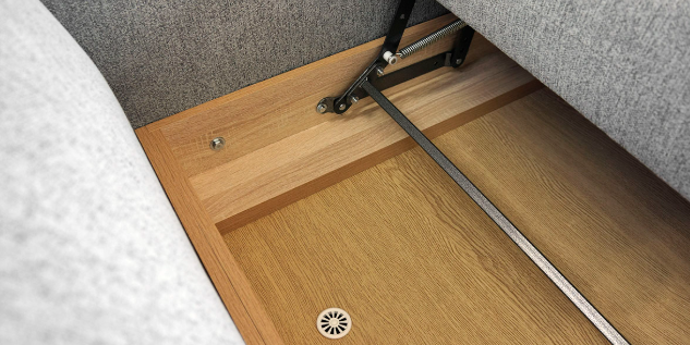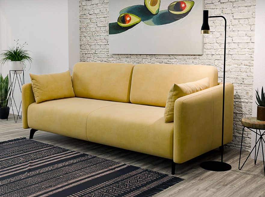 Небольшой современный диван на высоких опорах, высота которых позволяет легко пройти роботу-пылесосу. Мягкие сиденья на основе пружины «Змейка» и спальное место с удобным и надежным механизмом «Тик-Так». Под сиденьем имеется ящик для хранения вещей.